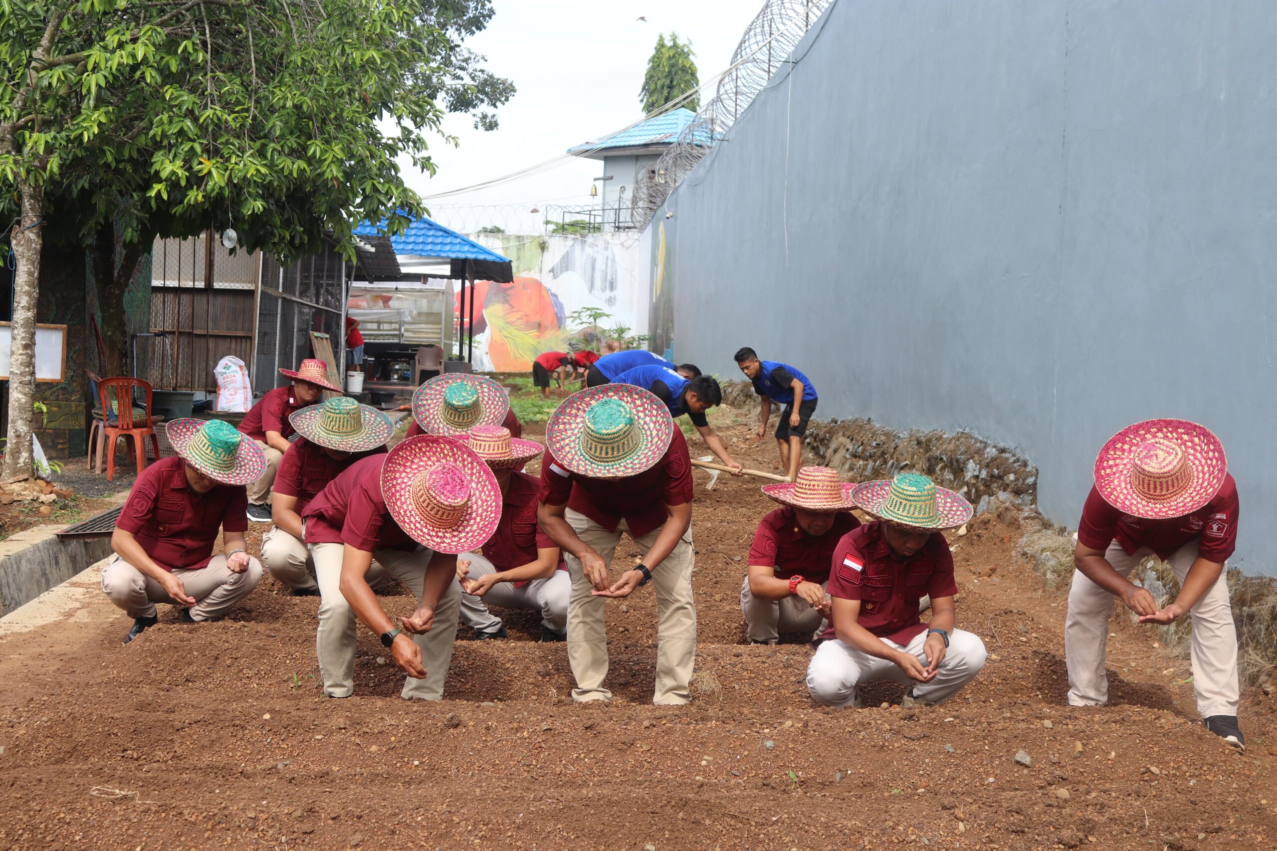 Kepala Lembaga Pemasyarakatan (Lapas) Narkotika Kelas IIA Karang Intan, Edi Mulyono, bersama pejabat struktural turut menanam kedelai secara langsung di lahan perluasan Sarana Asimilasi dan Edukasi (SAE) 1, Kamis (17/7). Langkah ini menjadi bagian dari upaya mendorong peningkatan produksi tempe hasil pembinaan kemandirian warga binaan.